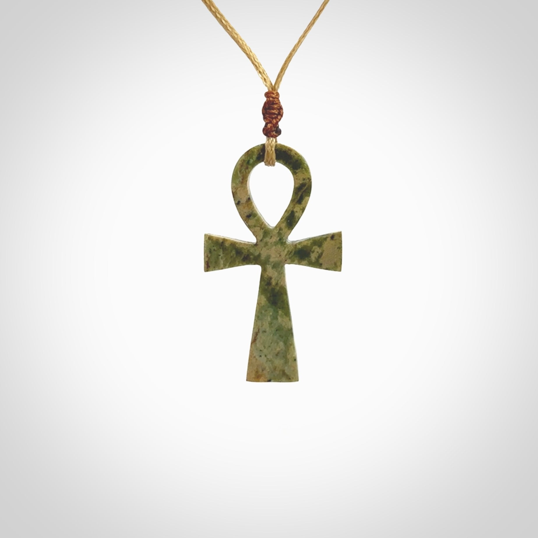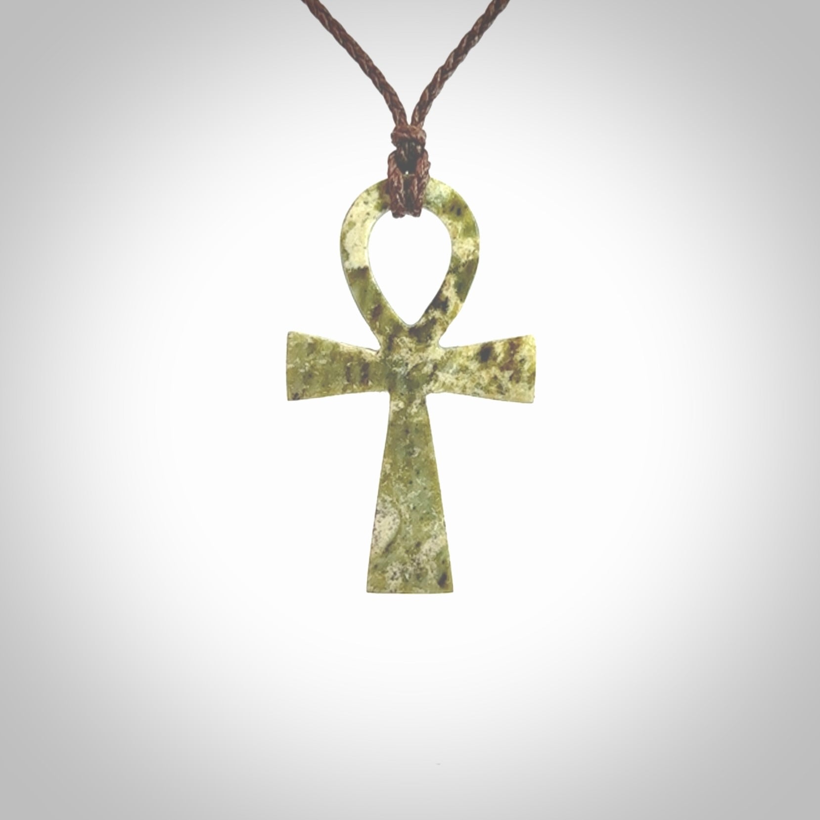 Aceh Jade Stone ankh cross pendant. Handmade jade jewellery made by NZ Pacific and for sale online. Jade stone ankh cross for men and women. Unique art to wear from NZ Pacific.