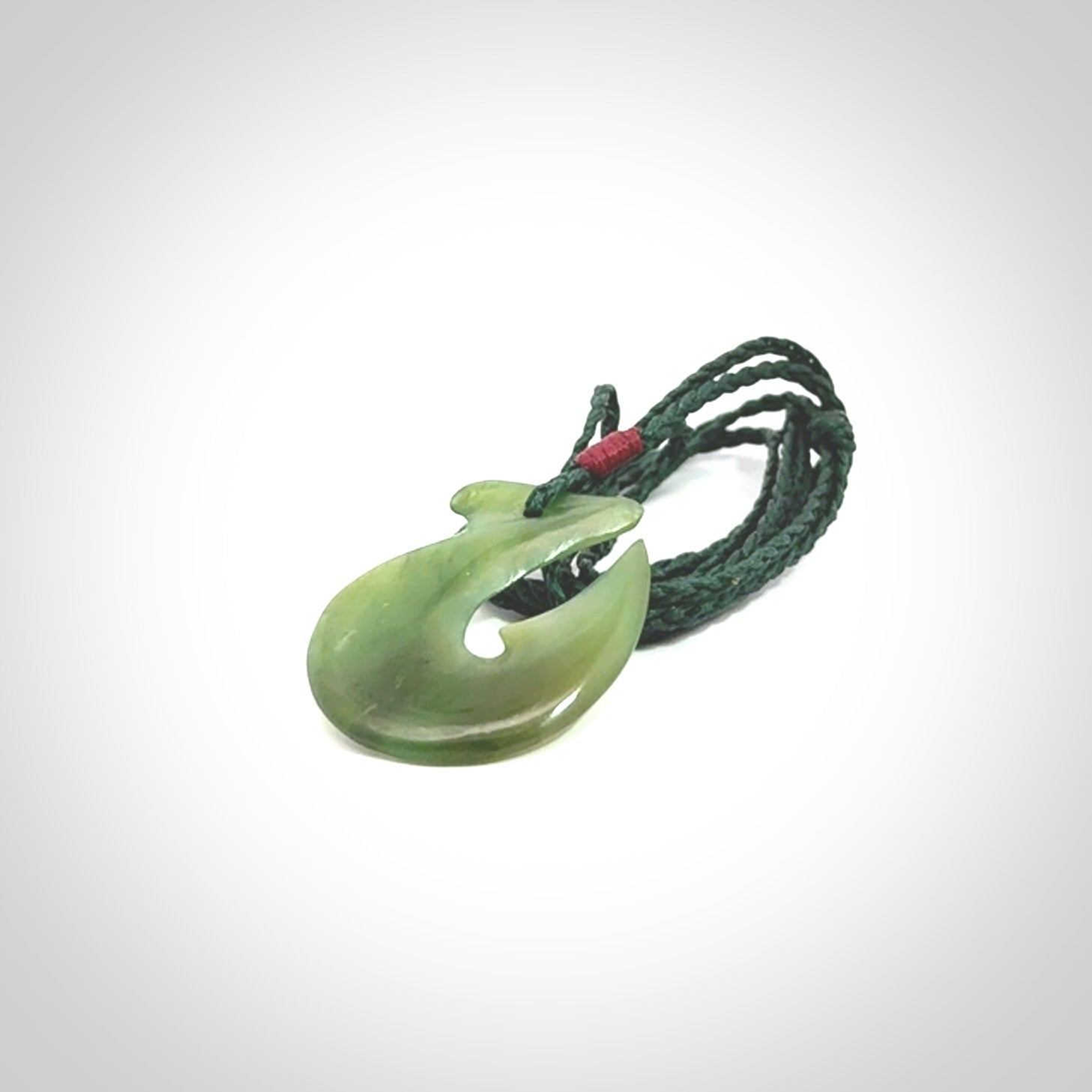 The piece on the Manuka Green cord has a small imperfection on the side of the hook, as a result we have reduced the price of this particular piece. This is barely visible and is otherwise a beautiful matau.