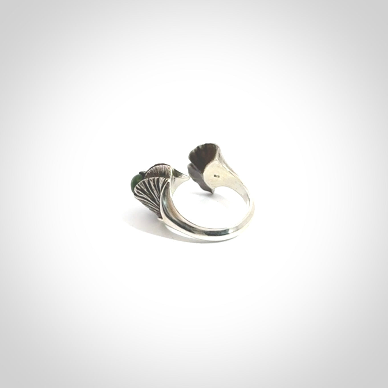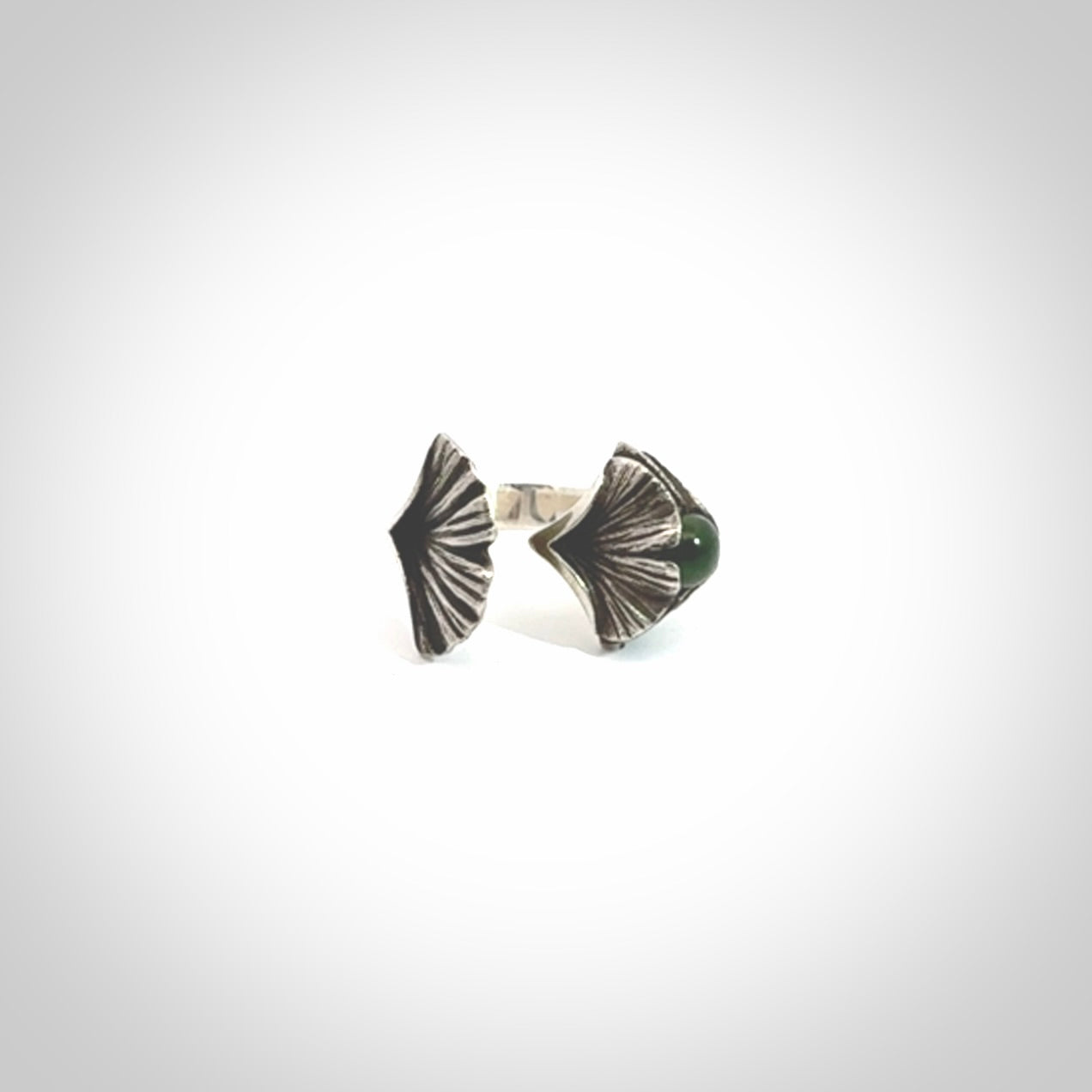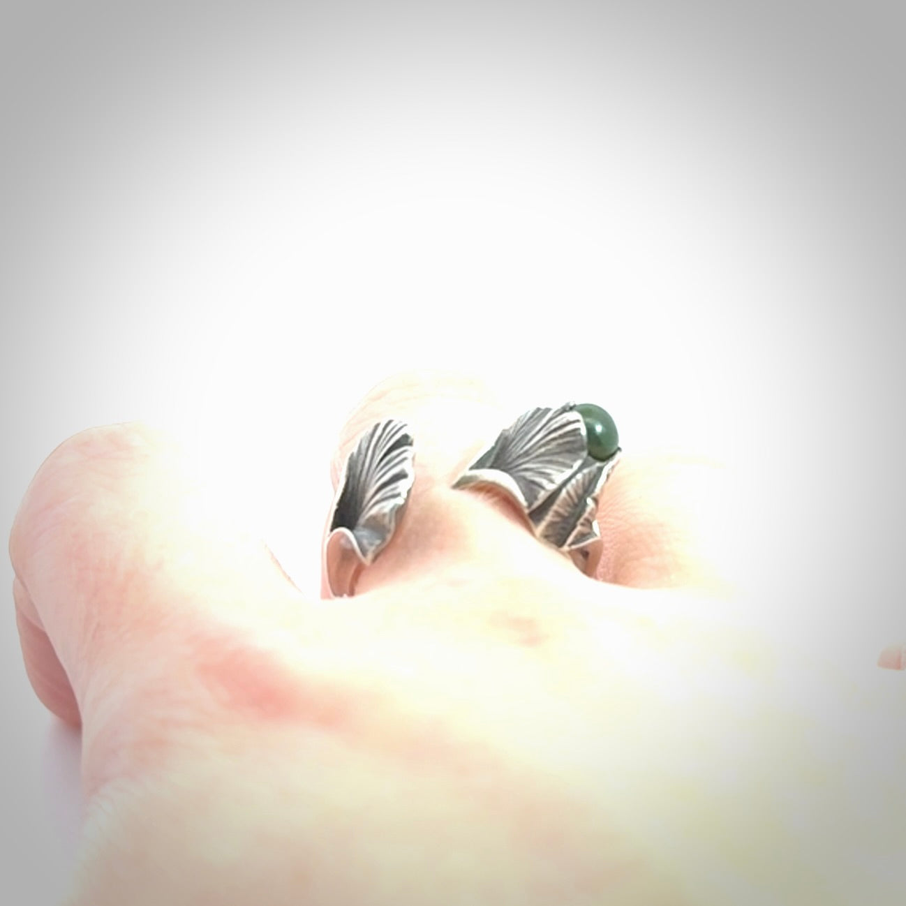 GINKGO RING - Hand made Ginkgo ring in Silver and Jade