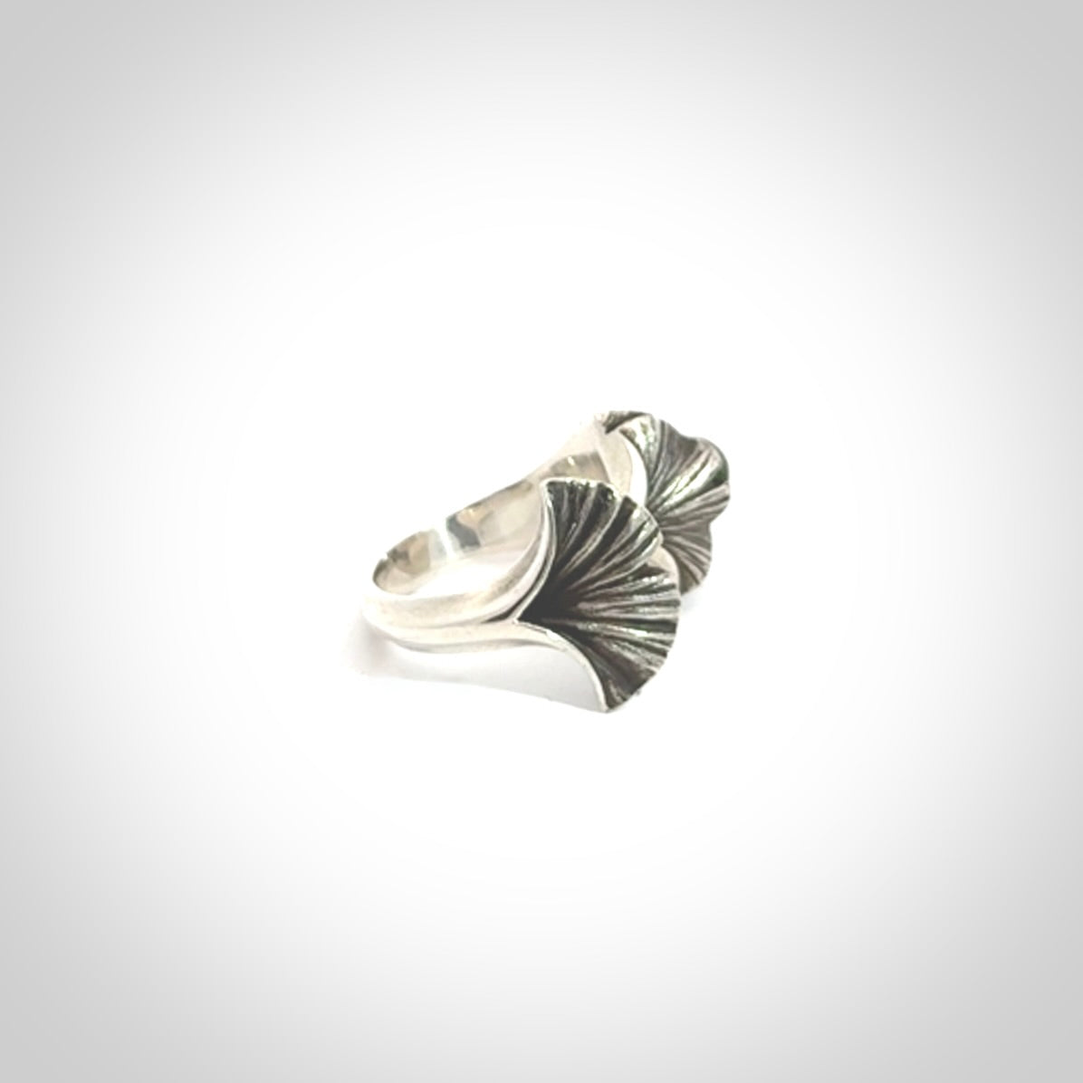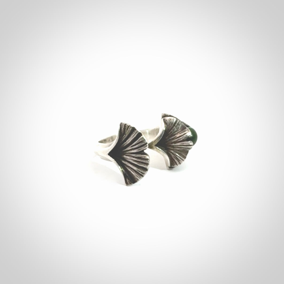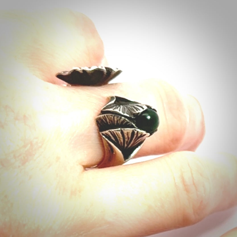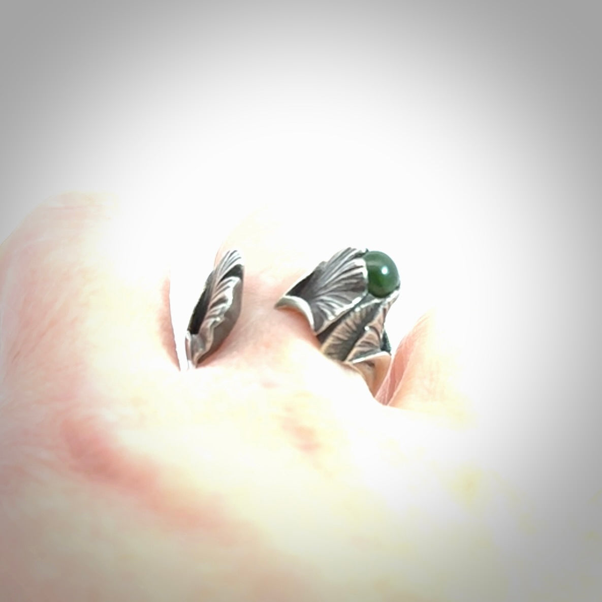 GINKGO RING - Hand made Ginkgo ring in Silver and Jade